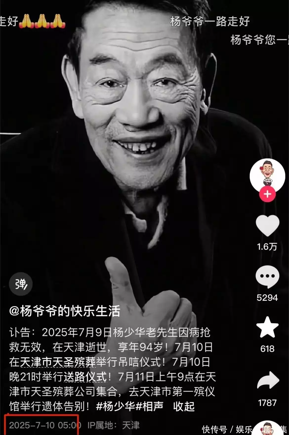 此言非虚,6月下旬蔡澜方才驾鹤西去,7月伊始相声界又传来噩耗,杨少华老前辈溘然离世。